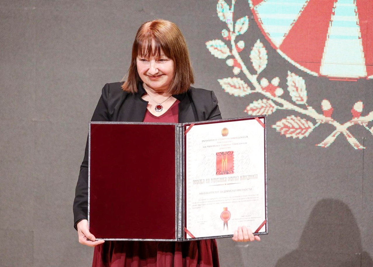 На свеченото доделување што се одржа на 25 март 2022 г., деканката Мими Таневска-Србиновска, во своето обраќање се заблагодари од името на Факултетот за драмски уметности за ова високо признание.